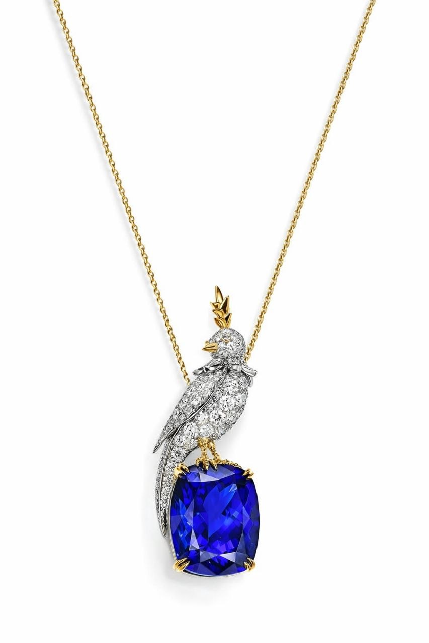 Bird On A Rock, Cushion Cut Stone Schlumberger Necklace, 925 Sterling Silver, Bird Necklace with Amethyst Stone Brooch