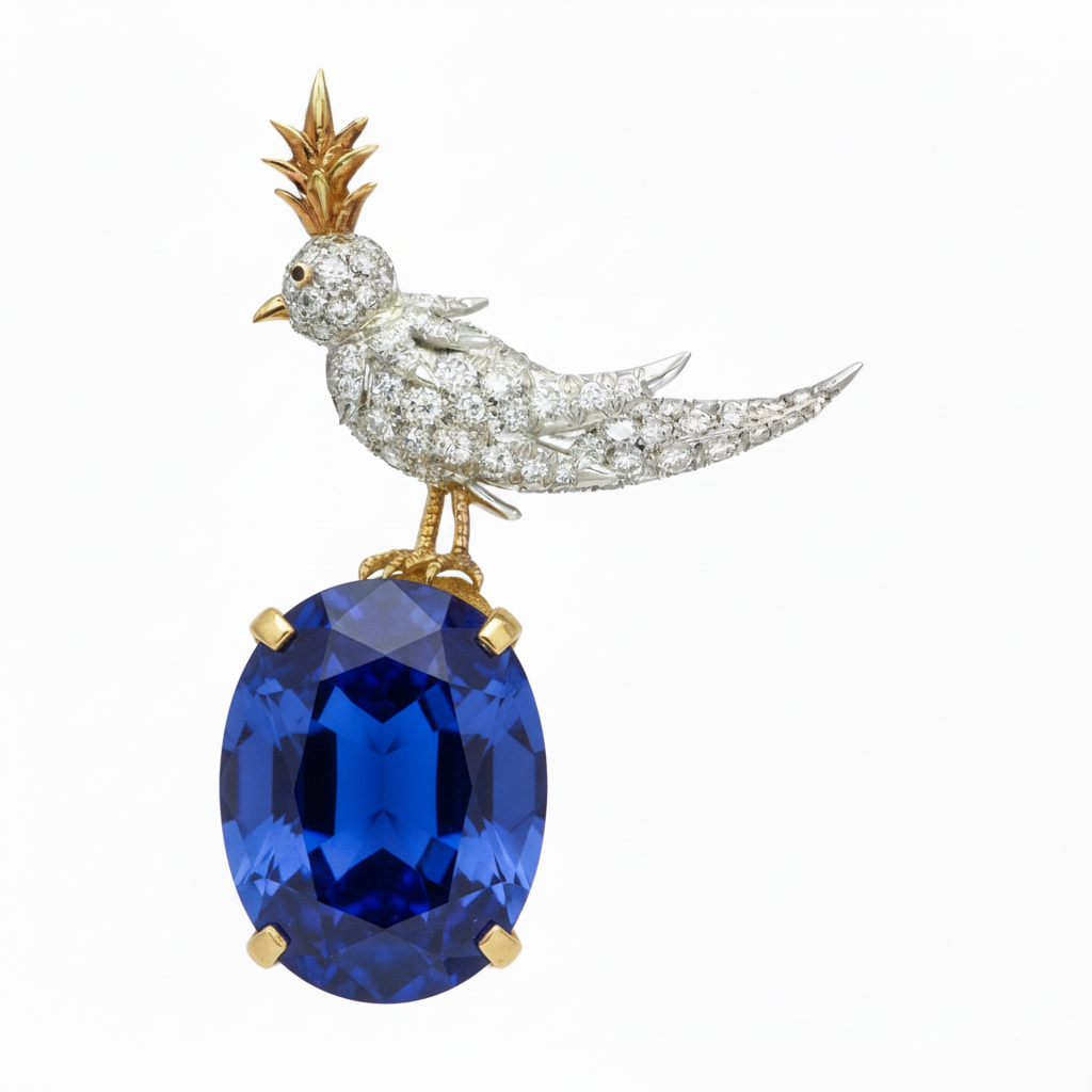Bird On A Rock, Blue Oval Cut Stone Schlumberger Brooch, 925 Sterling Silver Brooch, Bird Brooch with Blue Stone Brooch, Unisex Brooch
