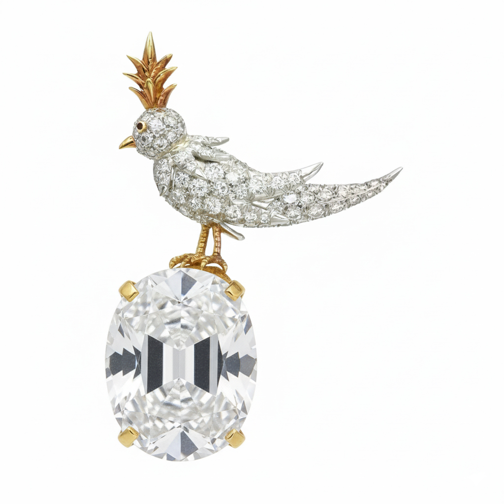 Bird On A Rock, White Oval Cut Stone Schlumberger Brooch, 925 Sterling Silver Brooch, Bird Brooch with White Stone Brooch, Unisex Brooch