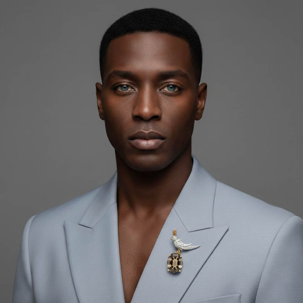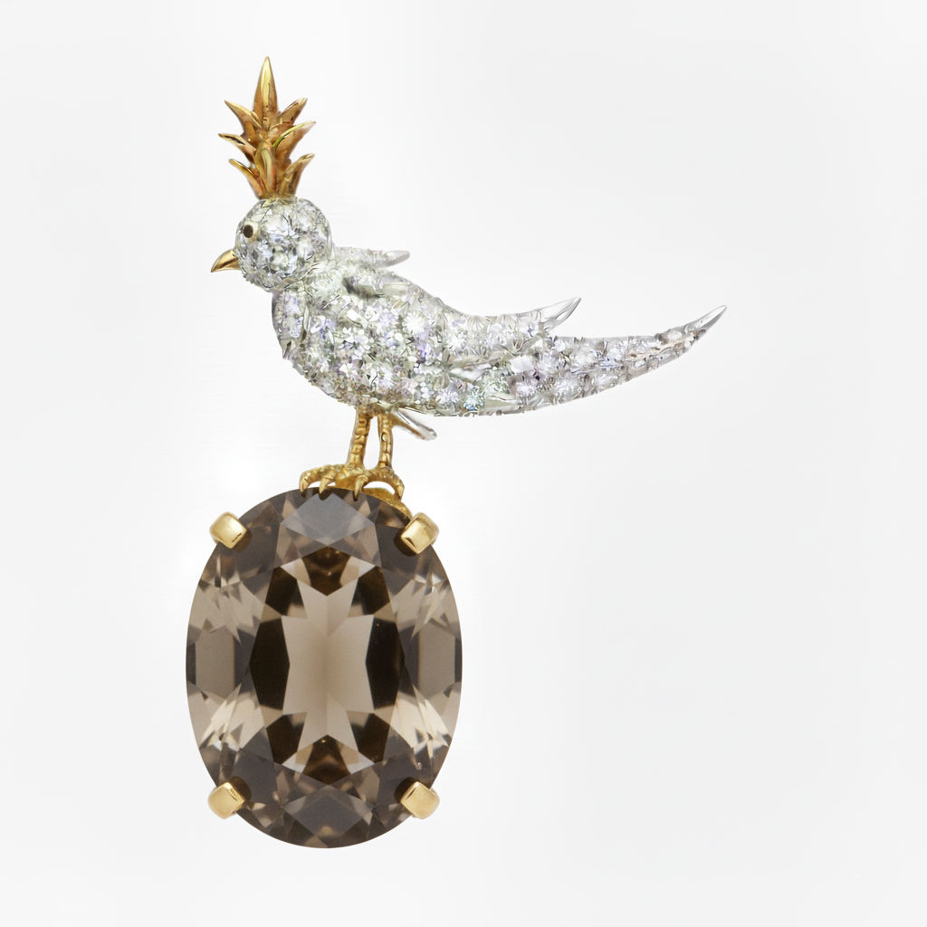 Bird On A Rock, Smoky Oval Cut Stone Schlumberger Brooch, 925 Sterling Silver Brooch, Bird Brooch with Smoky Stone Brooch, Unisex Brooch