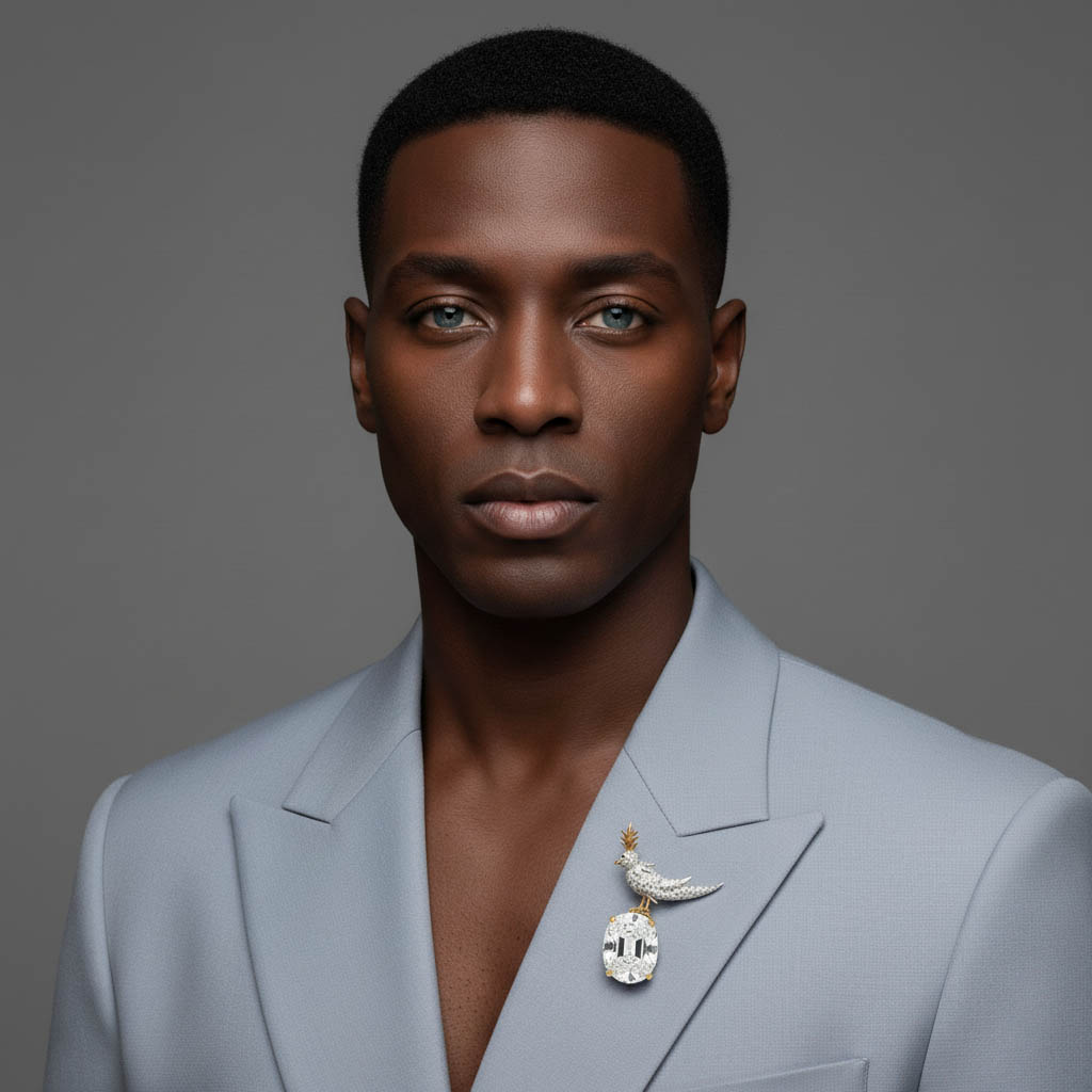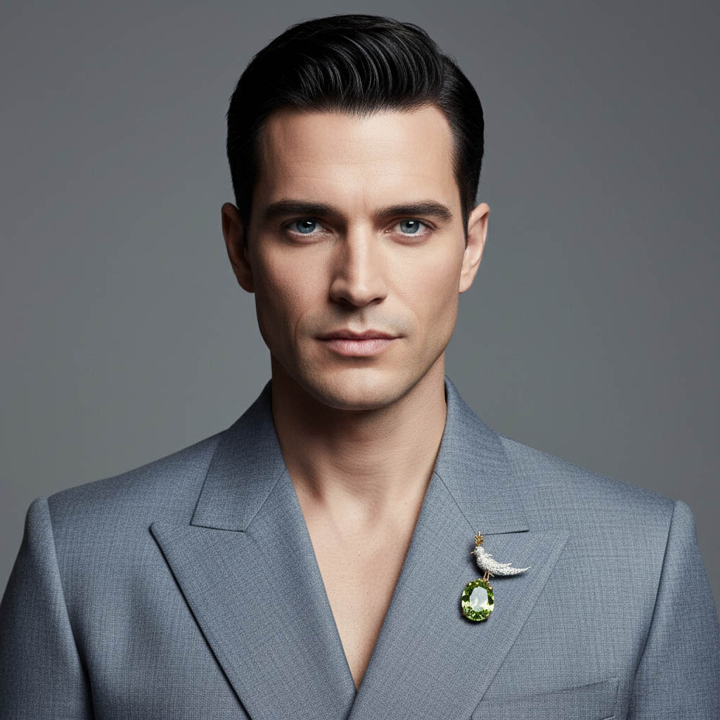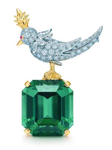 Bird On A Rock, Emerald Green Asscher Cut Stone Schlumberger Brooch, 925 Sterling Silver Brooch, Bird Brooch with Emerald Green Stone Brooch, Unisex Brooch