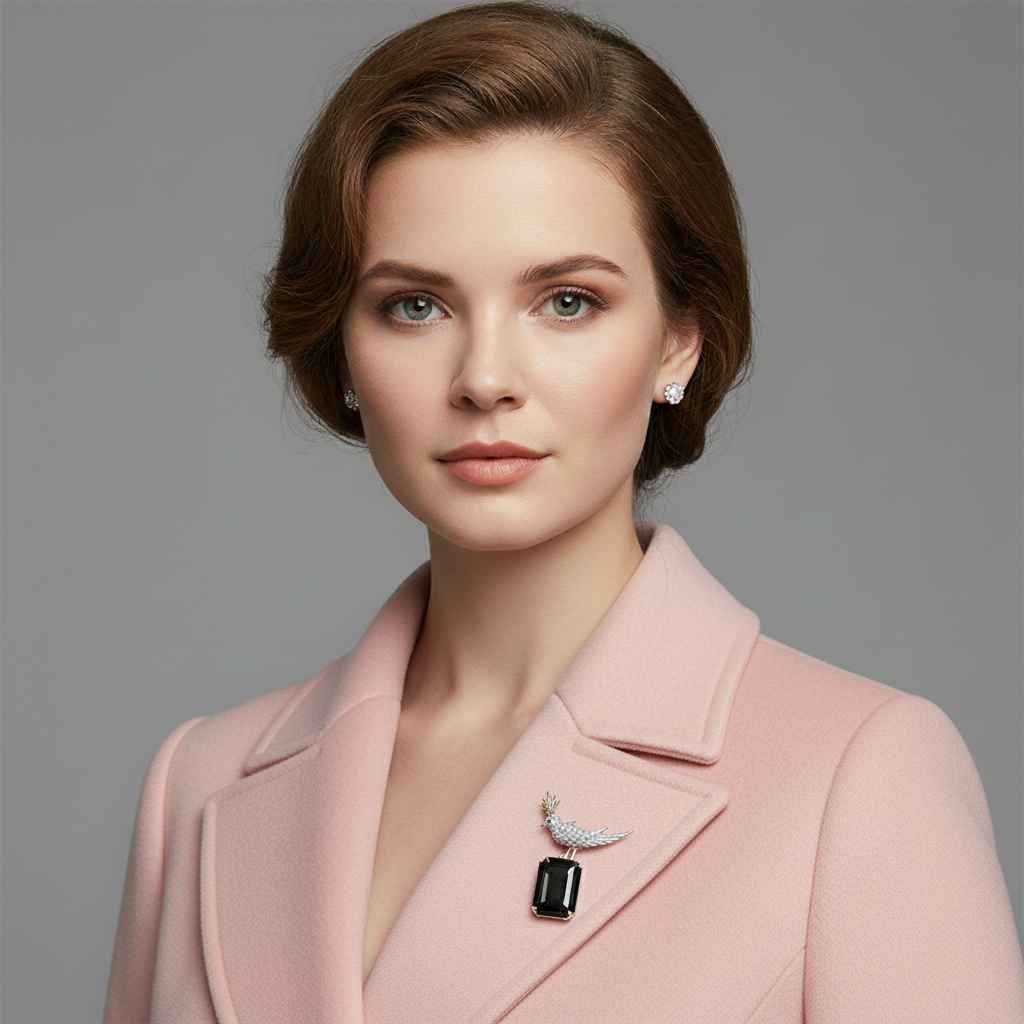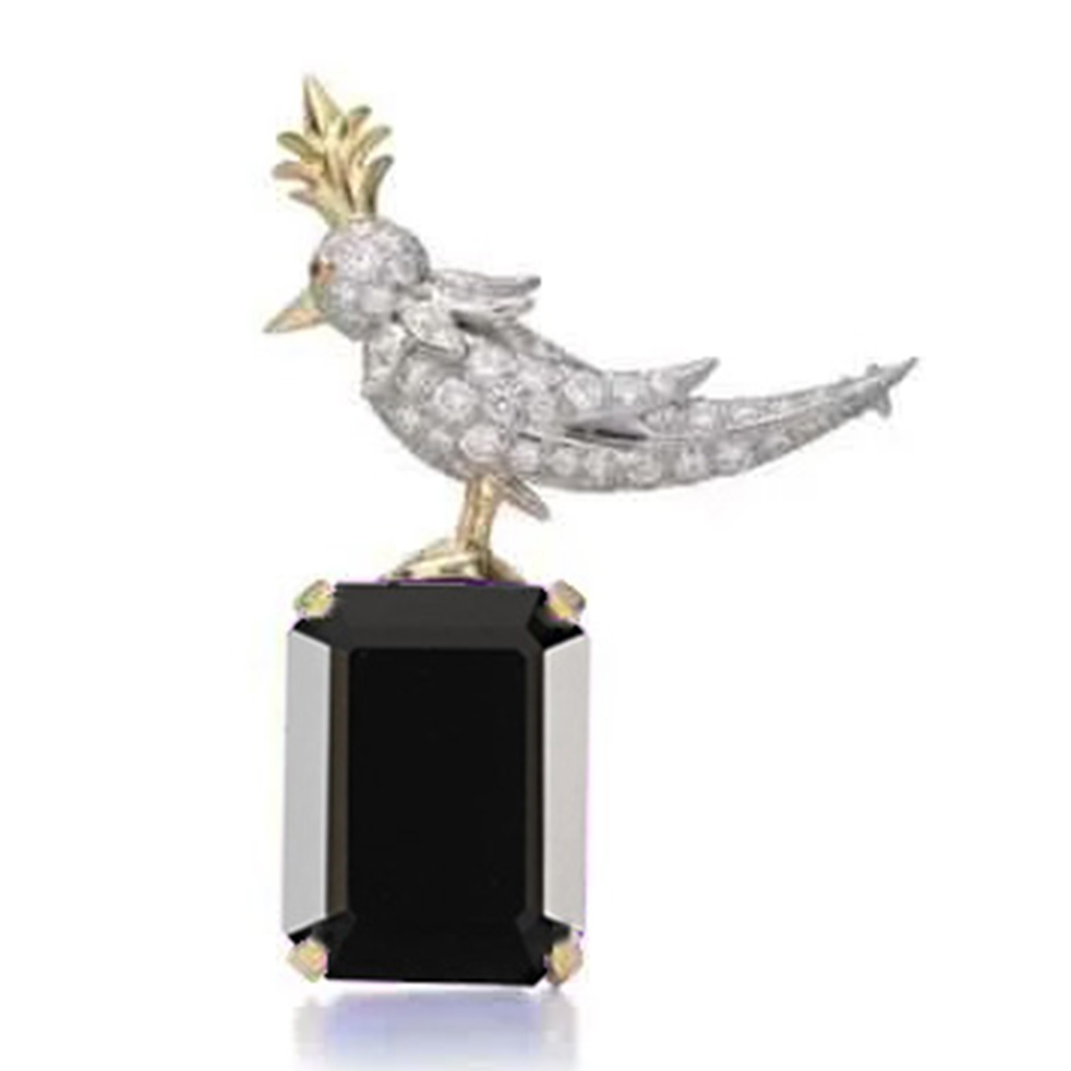 Schlumberger Bird On A Rock Black Emerald Cut Stone Brooch, 925 Sterling Silver Brooch, Bird Brooch with Black Stone Brooch, Unisex Brooch