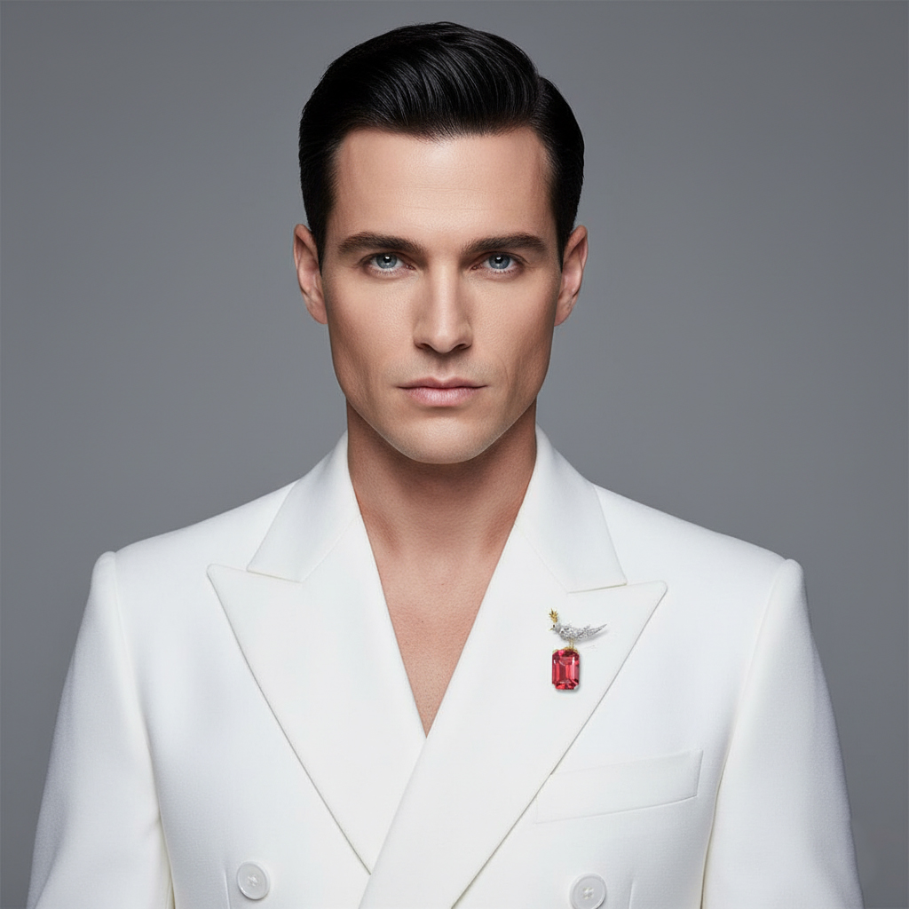 Bird On A Rock, Ruby Oval Cut Stone Schlumberger Brooch, 925 Sterling Silver Brooch, Bird Brooch with Ruby Stone Brooch, Unisex Brooch