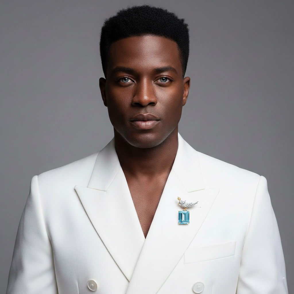 Schlumberger Bird On A Rock Aqua Emerald Cut Stone Brooch, 925 Sterling Silver Brooch, Bird Brooch with Aqua Stone Brooch, Unisex Brooch