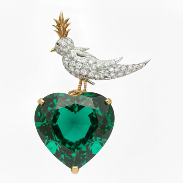 Bird on a Rock, Heart Cut Stone Schlumberger Brooch, 925 Sterling Silver Brooch, Bird Brooch with Morganite Pink Stone Brooch, Unisex Brooch