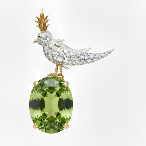 Bird On A Rock, Oval Cut Stone Schlumberger Brooch, 925 Sterling Silver Brooch, Bird Brooch with Green Stone Brooch, Unisex Brooch